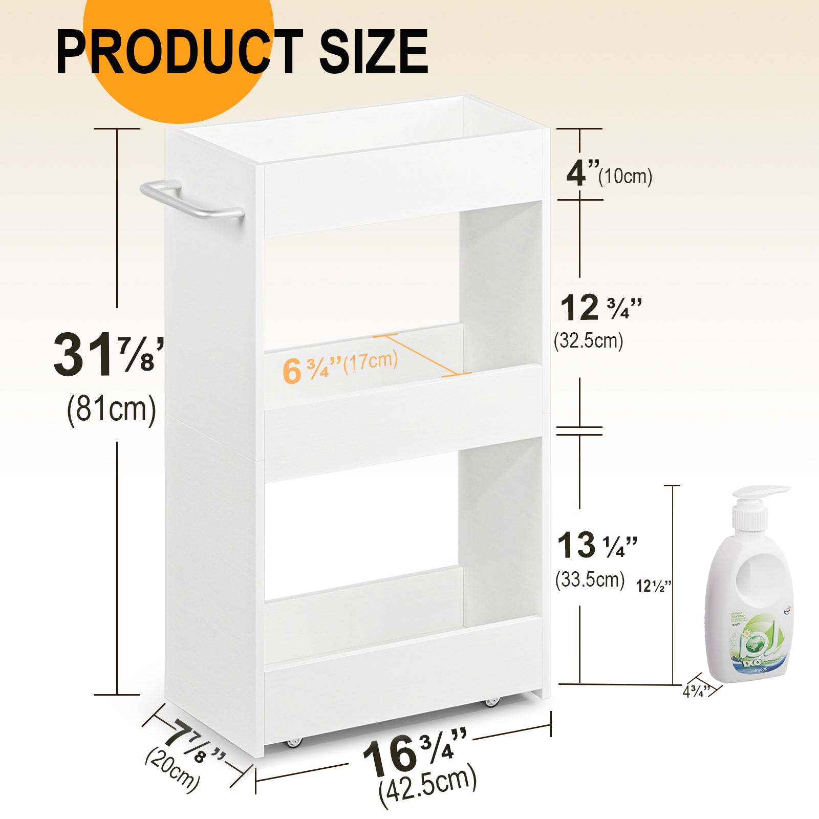 24.8D×7.9W, Slim Rolling Storage Cart with Wheels, Height Adjustable, Deeper Basket, Narrow Organizer. KS614 |